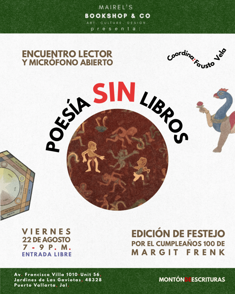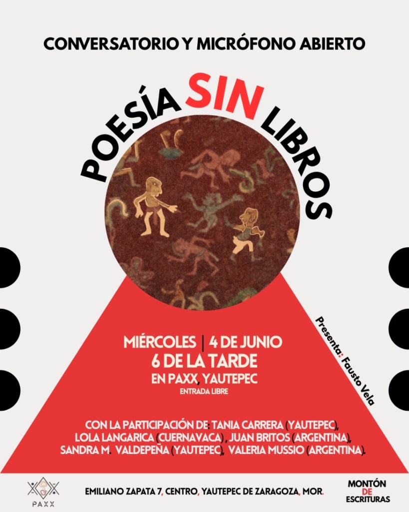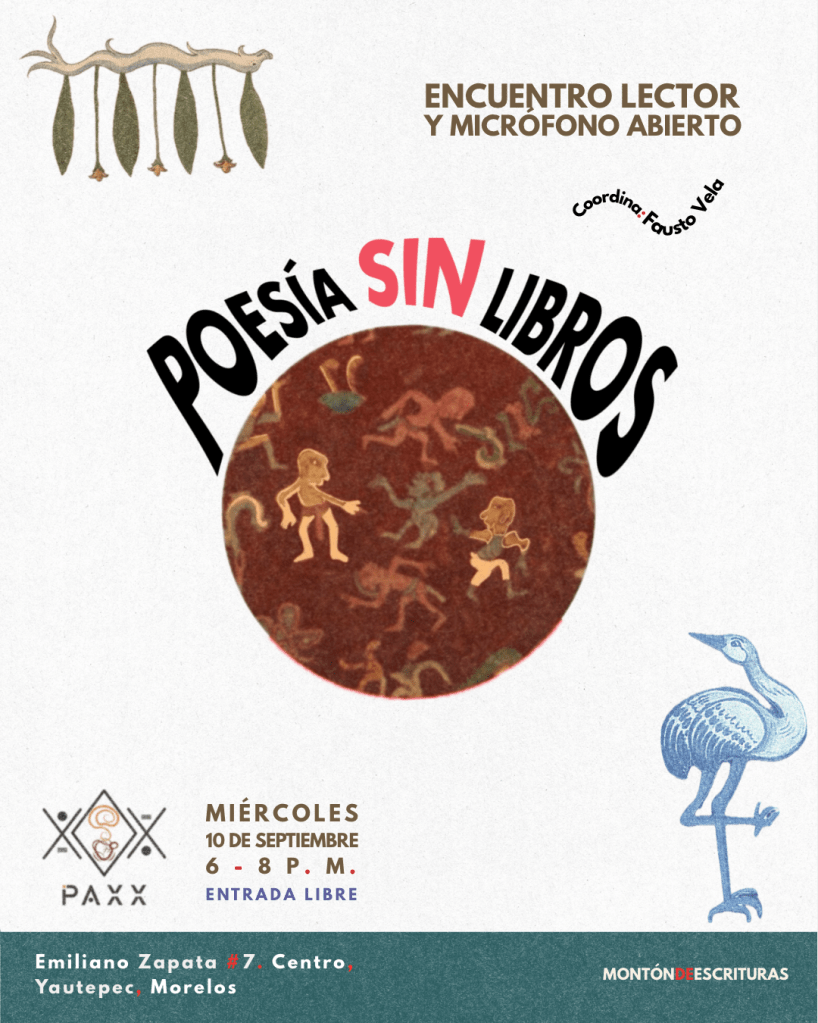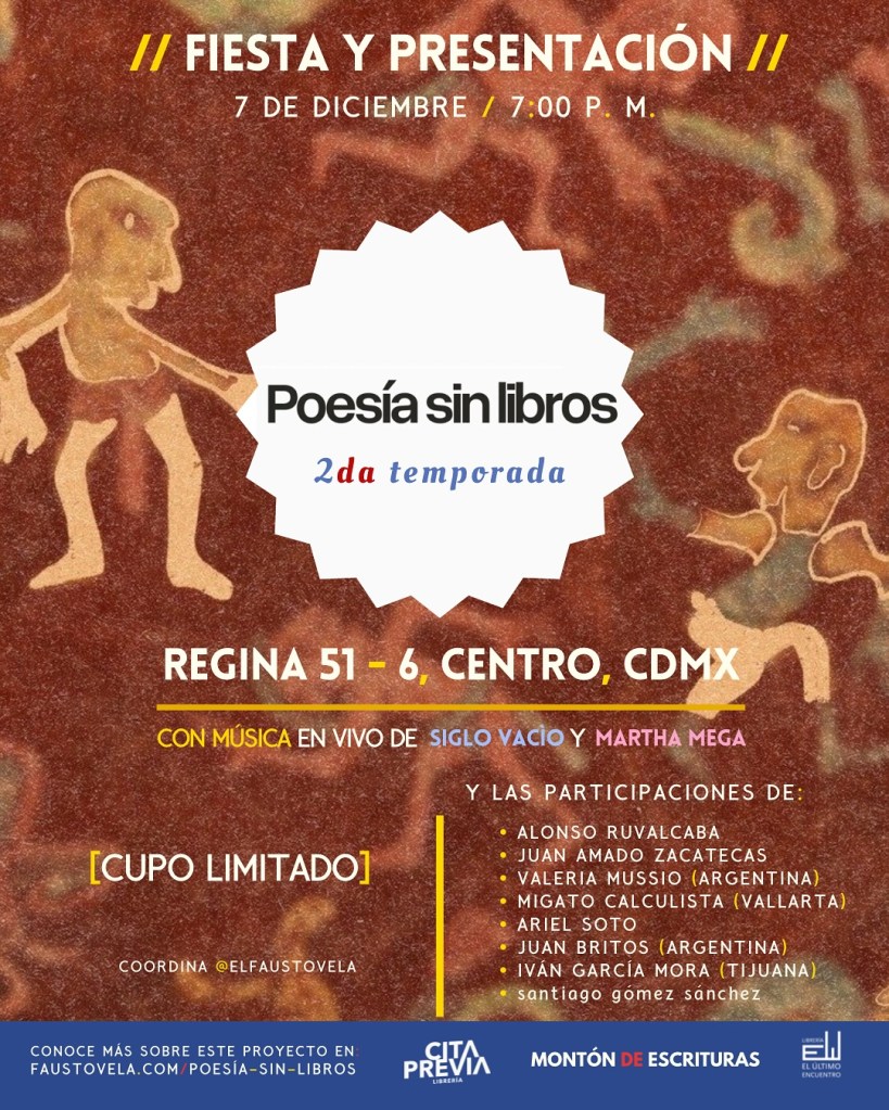 Es así que, desde mayo de 2024, se han realizado fiestas/conciertos y encuentros lectores con micrófono abierto en los que se comparten historias y conceptos sobre la poesía sin libros junto a la obra de artistas vinculados con el mundo poético. Conoce más aquí: